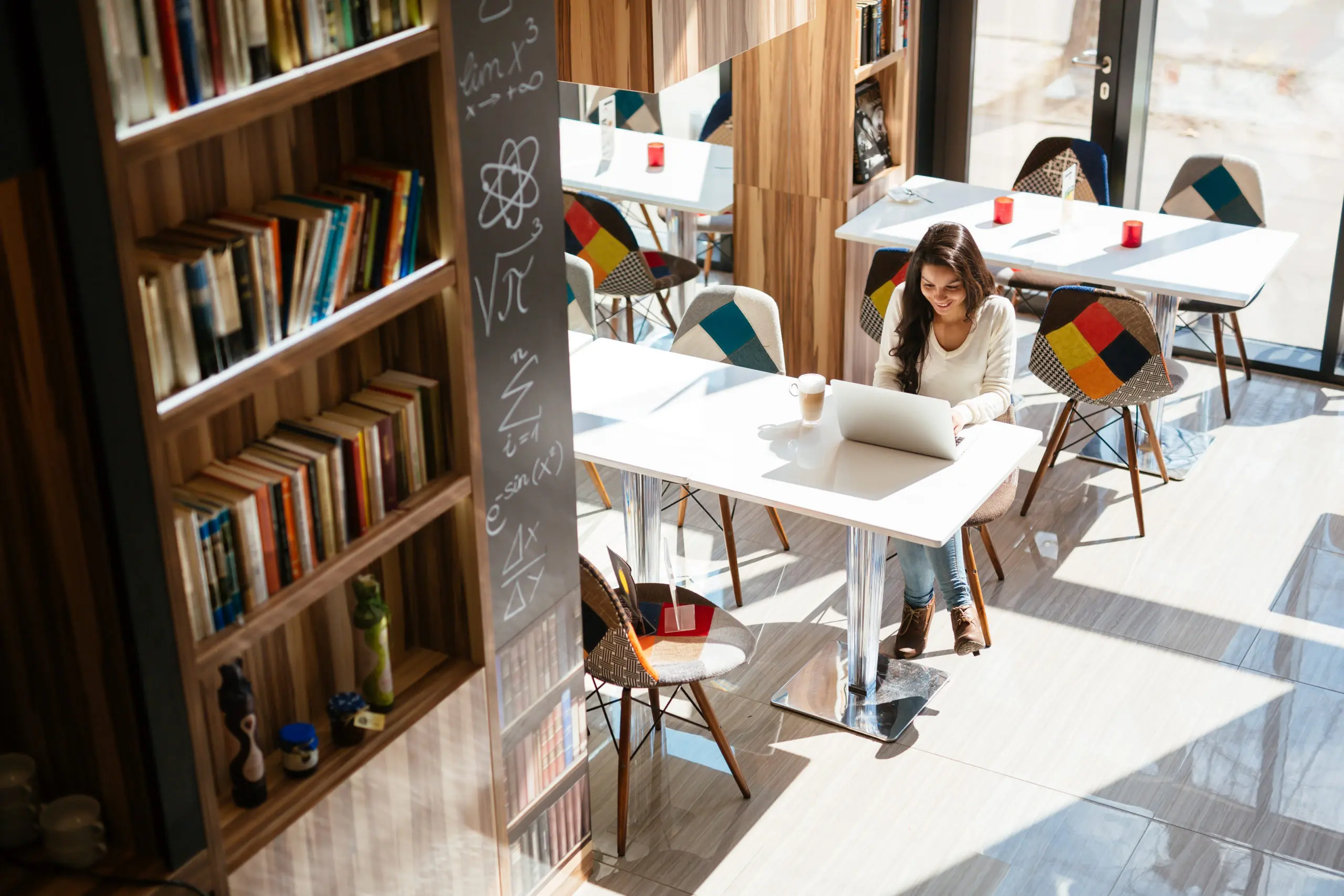 Beautiful young cute brunette studying on notebook